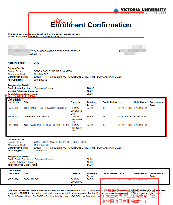 此通知发布后,各班即刻组织本班员工登录系统注册课程,具体课程参见《选课建议》,不可更改选课建议。选课完成后及时下载《注册确认书》并按照要求进行检查和签字(模板见附件6),将纸质版交至本班学委处。大三、大四及往届员工的学位课,必须同时在维大系统&亚澳系统两个系统进行选课,缺一不可。两个系统的课程需要一致。大一、大二的专业课,仅在维大系统选课。维大系统不能提交等原因导致选课不成功的同学,请填写《注册问题反馈表-Offshore Enrolment Issues Spreadsheet》(见附件3)。成绩问题请联系公司管理成绩的老师。请已经退出以及符合退出制度条件拟申请退出的员工,不要进行维大系统选课。拟申请退出的同学,在开学初接到公司通知后尽快向公司申请,申请成功后不需要在系统进行选课,需要单独选课。